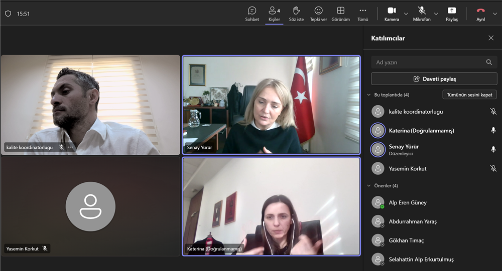 Toplantıya, Kalite Koordinatörü Doç. Dr. Sevilay Güler ile Öğr. Gör. Alp Eren Güney de katılım sağladı. Gerçekleştirilen görüşmenin, iyi uygulama örneklerinin paylaşılması yoluyla üniversitemizin kalite güvencesi ve dijital dönüşüm süreçlerine katkı sağlaması hedeflenmektedir.
