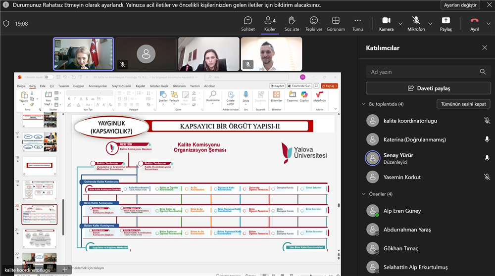 Toplantı kapsamında, üniversitemizin kalite süreçleri, kalite organizasyon yapısı, Stratejik Plan–PUKÖ (Planla–Uygula–Kontrol Et–Önlem Al) yaklaşımı ve bu süreçlerin dijitalleşme çalışmalarıyla bütünleştirilmesine yönelik uygulamalar ele alındı. Görüşmede karşılıklı deneyim paylaşımı yapılarak, kurumsal öz değerlendirme ve kalite güvencesi sistemlerinin sürdürülebilirliğine ilişkin değerlendirmelerde bulunuldu.