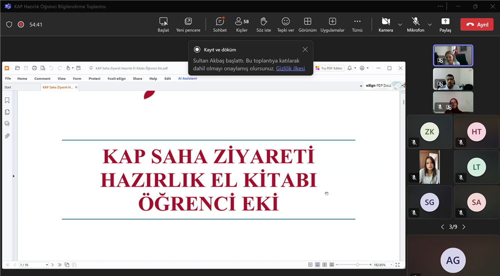 Ardından Rektör Yardımcısı Prof. Dr. Senay Yürür Karslıoğlu, üniversitemizin kalite ve akreditasyon çalışmaları hakkında kapsamlı bir sunum yaptı. Toplantıda KAP süreci tanıtıldı, kalite güvencesi ve akreditasyon adımları hakkında bilgi verildi ve öğrencilerin soruları yanıtlandı.