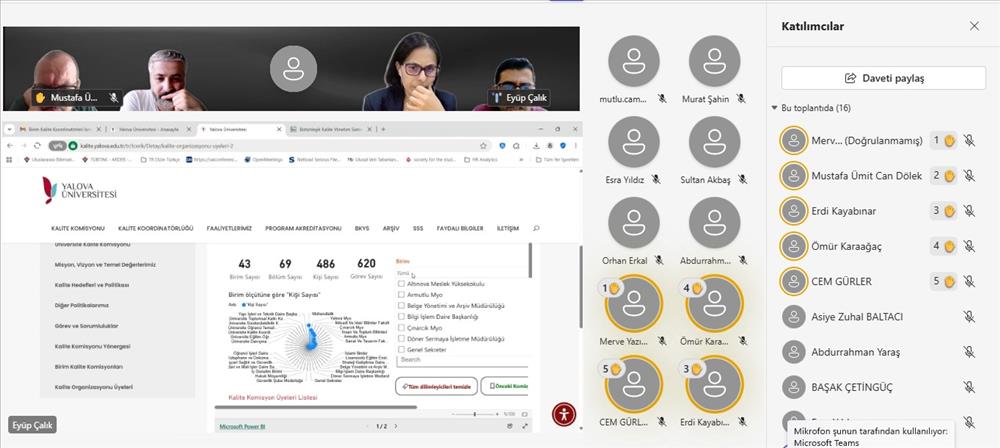 Görüşmelerde, kalite kültürünün görünürlüğü, stratejik planlama, paydaş katılımı, eğitim-öğretim ve araştırma faaliyetlerinin iyileştirilmesi gibi başlıklar öne çıktı. Ayrıca, her birimde görevli kalite ekiplerinin toplantı notlarının düzenli biçimde toplanabilmesi için ortak bir OneDrive paylaşım alanı oluşturuldu ve süreçte bilgi bütünlüğünün sağlanmasına vurgu yapıldı.